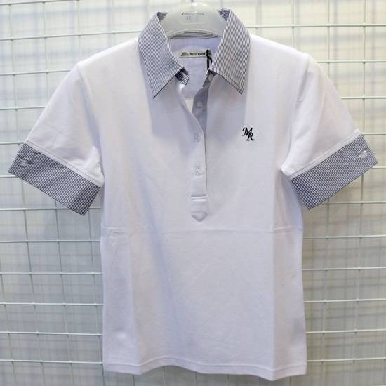 The short-sleeve ladies' polo shirt features a traditional point collar and a four-button placket, offering a flattering comfortable fit. The compact horizontal stripes in contrasting colors on the collar and cuffs add an additional touch. This shirt makes an easy-to-match item for your casual wardrobe.