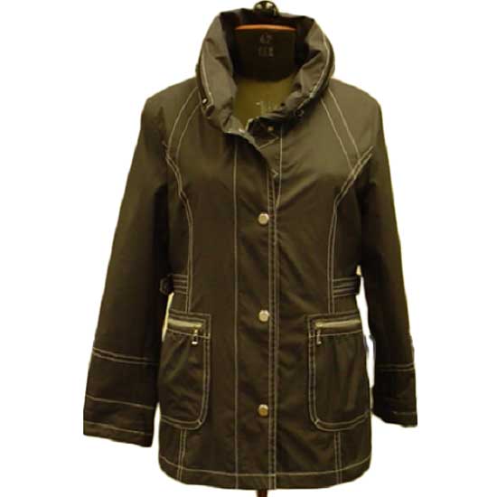 This is a ladies’ jacket designed with a slim hip-length cut. The jacket comes in black, highlighted by sharp stitches. The hood can be hidden in a zipper pocket when needed.\