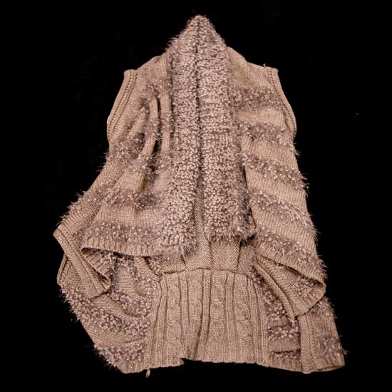 This ladies’ sleeveless poncho comes with fashionable plush designs for added warmth. The twisted knitting at back brings a touch of uniqueness. This stylish poncho is a must-have item for ladies.