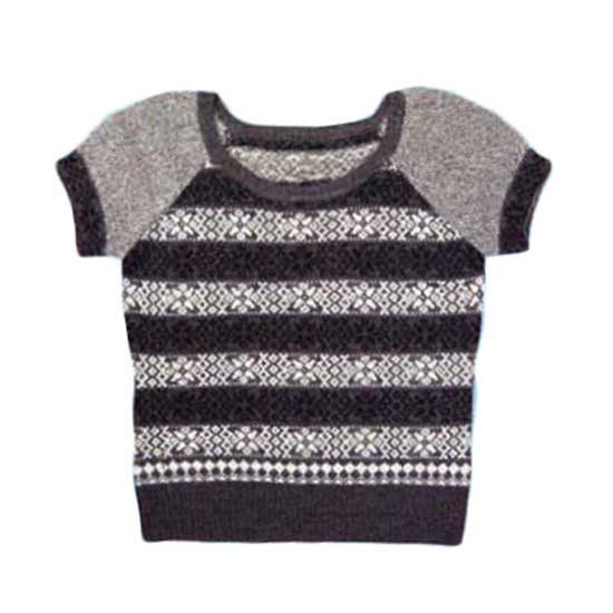 This ladies' pullover features a round neck with a pair of short sleeves. The front boasts stripe detailing with jacquard patterns appearing alternately. Relax in remarkable beauty of this impressive pullover.
