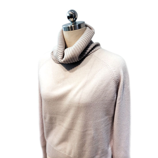This is a ladies' pullover made of 100% cashmere in beige. It features a turtle neck and long sleeves. This dainty pullover goes well with assorted trousers and outerwear.