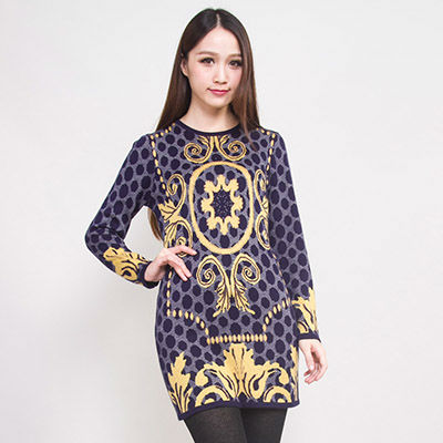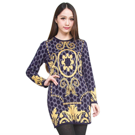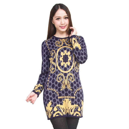 Ladies' knitted crew neck long sleeves jacquard pullover.