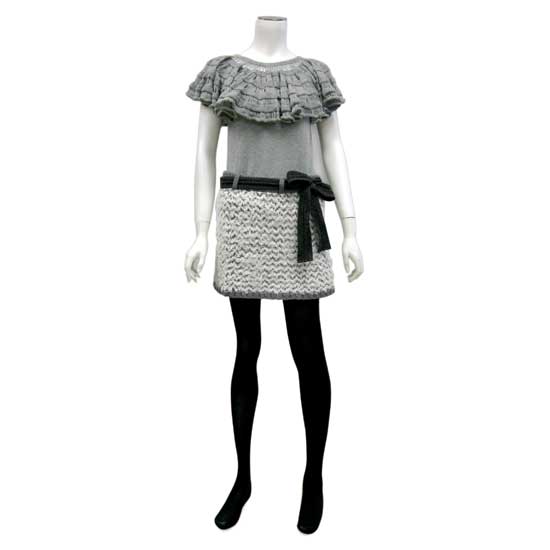 As shown is a beautiful set of knitted pullover and skirt made of quality wool. The pullover flaunts a gorgeous tiered neck featuring drop-needle patterns. The skirt features zigzag patterns with a smooth fluffy texture.