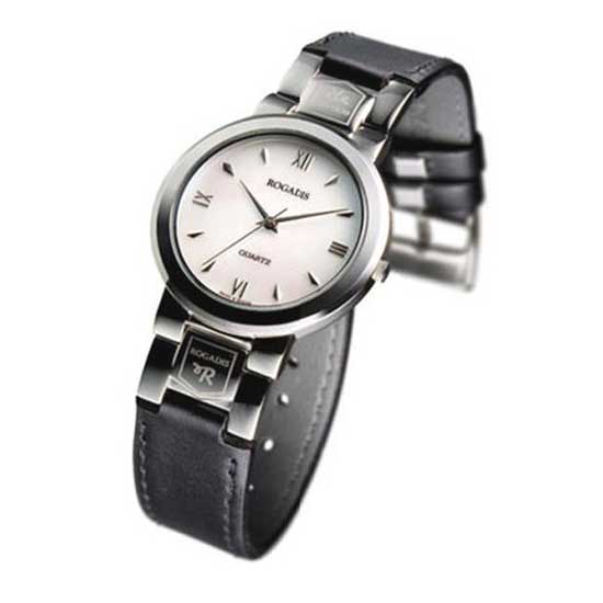 The ladies' quartz analog watch features a round case with a leather watchband. It comes with Roman-numeral hour markers for a classic touch. This stylish quartz analog watch will complement any outfit in a beautiful way.