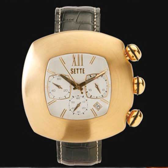 This quartz analog watch boasts a fashionable appearance with its stainless steel case in a square shape. The case is plated in brushed gold, it is further decorated by shiny crowns, creating a contrasting effect. The dial is embedded in the case for a unique seamless style.