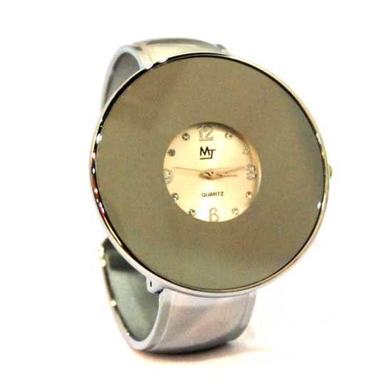 This ladies' analog watch catches your eyes with its ultra-big dial. The dial in a golden tone features numeral and round-shaped hour markers. The watch can be worn comfortably with its bangle design. Add this special piece to your watch collection.
