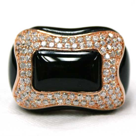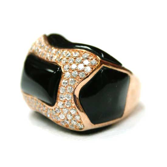 Available here is a ring coming with volume and sparkles. The ring is well crafted with a black stone, encrusted with shimmering CZ stones. The ring compliments any style easily.