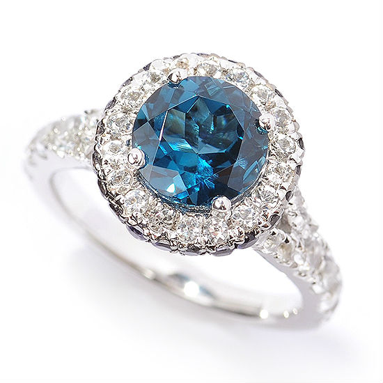 Eye-catching round cut blue topaz is bordered by sparkling white topaz for a look that will impress.