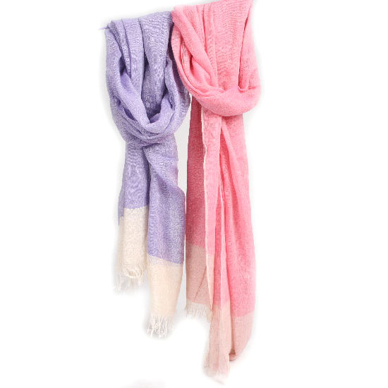 This ladies' scarf comes with a sweet, simplistic two-tone design. This scarf keeps your neck warm and adds a girlish touch to your look. This versatile accessory makes an ideal addition to your summer and spring wardrobe.