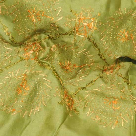 This beautiful scarf features well-tailored embroideries for added style. The sheen green material casts a polished look. This graceful scarf makes a fashionable addition to every woman.