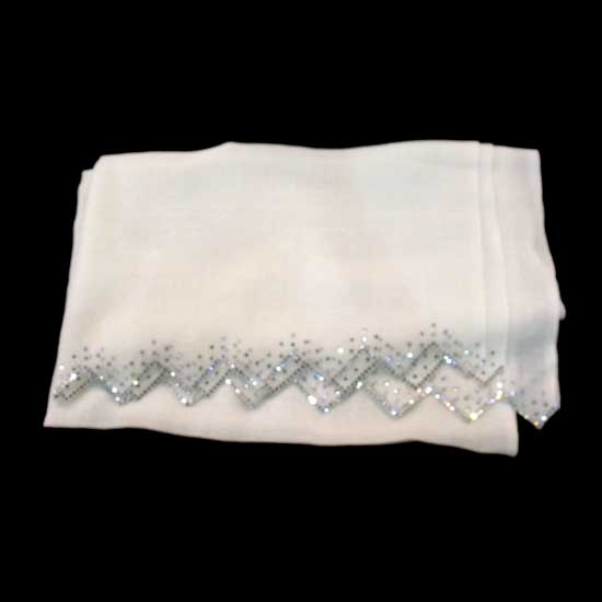 This is a stylish scarf specially designed for the fashionable ladies. This ladies’ scarf is made of silk and wool, which ensure wearing comfort. This adorable scarf comes with shiny stones at side for an eye-catching look.