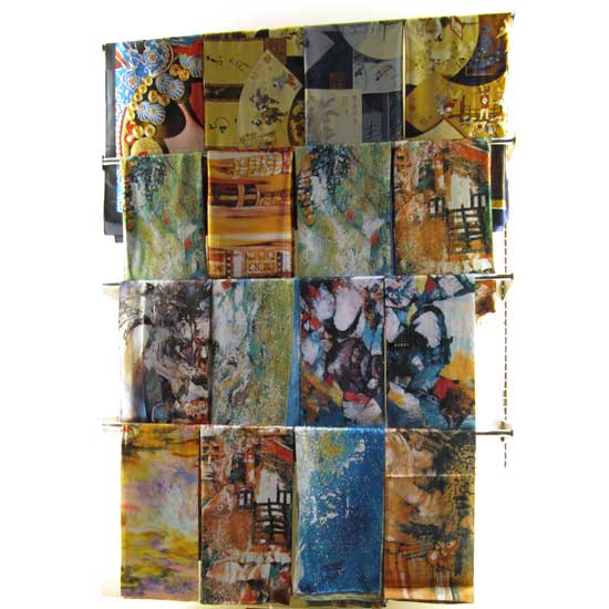 Pictured is a series of ladies' scarves with artistic digital prints. The smooth and soft touching makes them irresistible. Add a layer of warmth simply with any of these trendy scarves.