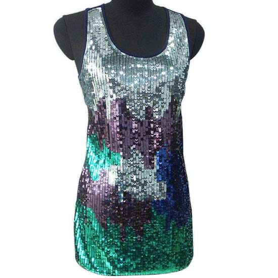The ladies' round-neck vest is fully embellished with sequins in various colors. It is well designed with excellent quality. This shiny sequin vest is great for parties.