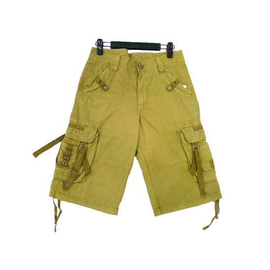 This is a pair of ladies' shorts with a cool and casual design. It features two large side pockets with snap enclosures and strap accents for added uniqueness. Made of full cotton fabric, this pair of shorts is comfortable to wear.