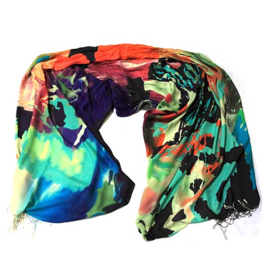 The ladies' silk scarf boasts flamboyant abstract prints to showcase an aesthetic touch. Its soft and sheer texture offers incredible comfort. Add a dramatic touch to your look with this printed silk scarf.