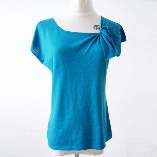 This top features unique design of the sleeves, with one seamless and one with a special cut. Its sharp blue color showcases a fresh summer style. This top is made of cashmere and silk for a luxuriously soft texture.