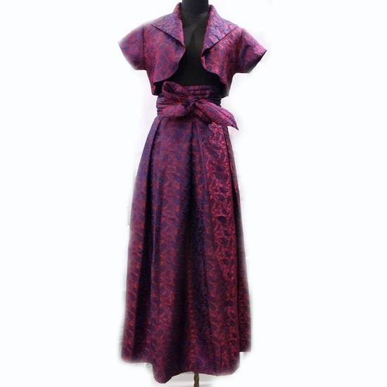 This sophisticated set includes a cropped jacket and a long-length skirt. The short-sleeve jacket comes with an oversized foldover collar and an open placket. The high-rise skirt has a self-tie waistband for a better fit. The pleated and flared hemline showcases a touch of uniqueness. Make a grand entrance in this gorgeous set.