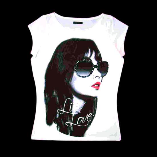 This ladies' sleeveless T-shirt is finely printed with a stylish ladies' picture on the front. The cotton T-shirt has been enzyme washed to produce a vintage effect. The comfortable and lightweight T-shirt is suitable for any causal occasions.