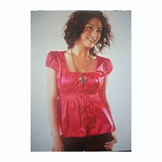 The ladies' blouse features cap sleeves with a smocked bodice for a flattering fit. It comes with a square neckline and a front button closure. Show off your lively side with this elegant blouse.