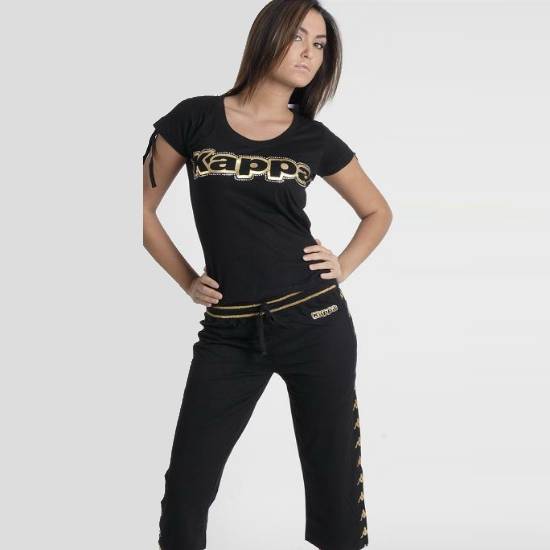 This ladies' sportswear includes a short-sleeve T-shirt and a pair of matching capri pants. The round-neck T-shirt bestows a slim-fit design and drawstrings on the sleeves, giving you style and revealing your curvatures while working out. Made of extremely comfortable material, this sportswear is the perfect attire in the gym.