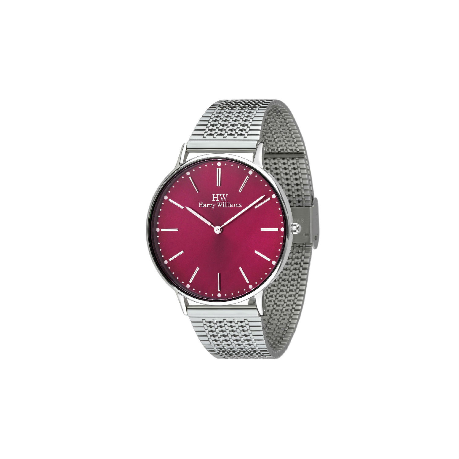• Round claret dial in sleek finish.