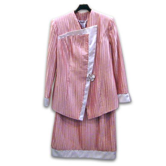 The suit is traditional in design for mature women going to special occassions.