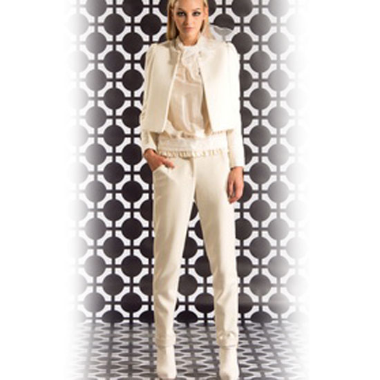 This ladies' suit features a white, long-sleeved jacket and a pair of white, regular-fit trousers. The jacket is made from top grade materials for a coarse and stiff texture. It is perfect to complete your semi-formal business look.