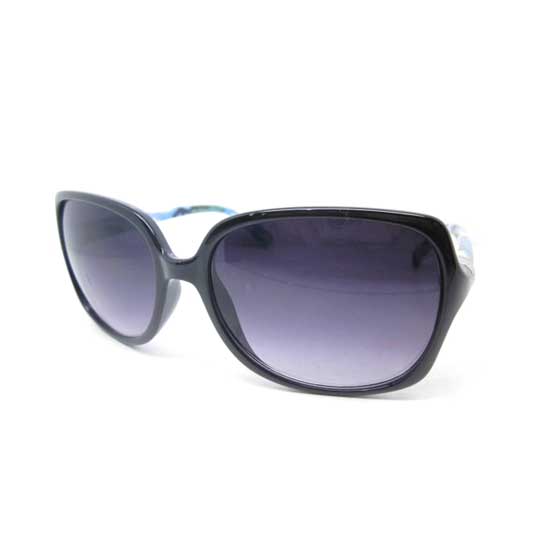 These fashionable sunglasses feature over-sized purple lenses and a sleek black frame. The refreshing motifs on the temples add a touch of sophistication to this trendy eyewear. These chic sunglasses add instant style and intrigue to your wardrobe.