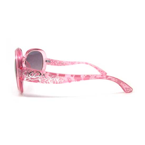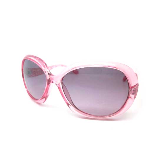 These elegant ladies' sunglasses feature a translucent pink frame and purple lenses. The sleek temples are accented with attractive silver-toned embellishment. These pink sunglasses will add a feminine touch to your look.
