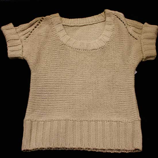 Featured here is a sweater made to fit the feminine curves. The sweater is knitted in the popular beige hue for a touch of style. The sweater is designed short-sleeved, making it easy to match with a wide range of tops.