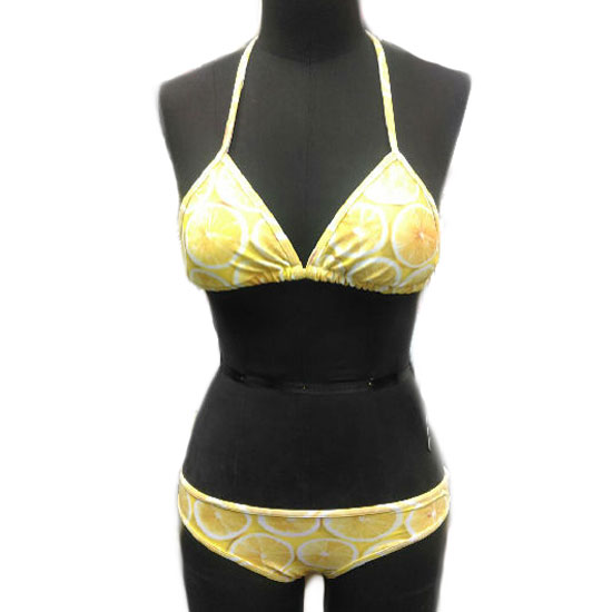 This is a bikini set made of soft material. It comes in bright yellow with exquisite patterns for added style. This swimwear set surely is a nice choice for any modern lady.