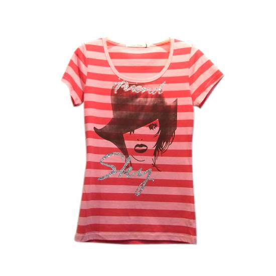 This ladies' striped T-shirt is embellished with a printed pattern of a girl.