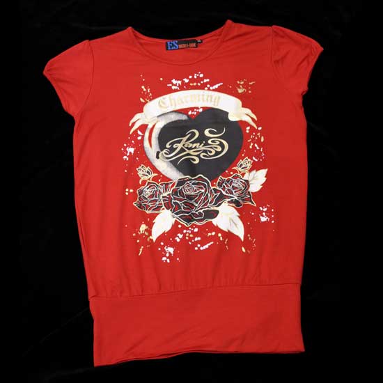 This presented ladies' T-shirt is printed with stylish graphics to boost attractiveness. Its special skinny-fit cutting makes the entire piece look stylish and chic. This ladies' T-shirt is an easy-to-match item for smart girls.