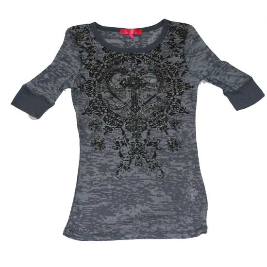 Featured here is a patterned ladies' T-shirt. Designed with elaborate graphical patterns, this ladies' T-shirt adds a touch of elegance to the wearer. Made with comfortable materials, this ladies' T-shirt is an ideal addition to your wardrobe.
