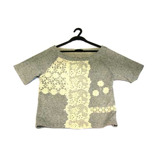 This ladies' T-shirt features white floral designs on the gray surface. The finely manufactured cotton T-shirt delivers satisfying wearing comfort. It is a great option for your daily outfit.