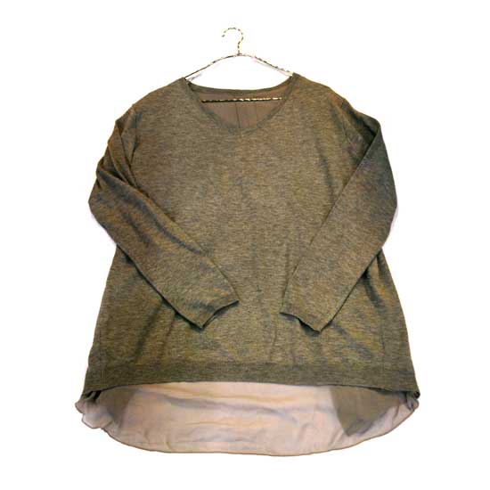 This ladies’ T-shirt features a V-neckline and long sleeves. This grey-colored T-shirt is made of 65% viscose and 35% polyester for a soft touch. This simple yet stylish T-shirt is easy to mix and match.