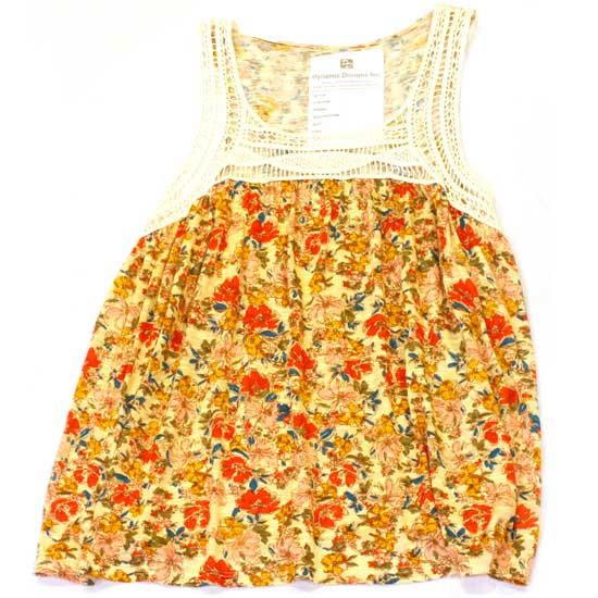 The ladies' tank top is fully weaved with cotton for satisfying comfort. Its bottom half is decorated with ornate floral patterns. The straps also feature an elegant-looking lace design.