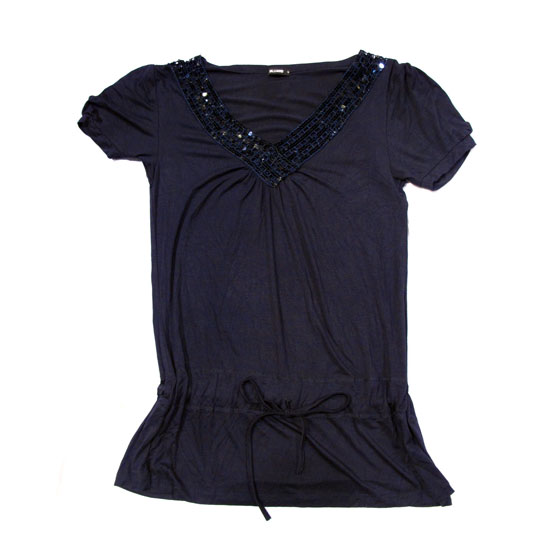 Featuring a simple yet chic design, this outlined ladies' top is easy to mix and match. The allover black wear is accented with a sequined neckline, showcasing a sense of refinement. The 95% viscose and 5% spandex construction allows gratifying wearing comfort.
