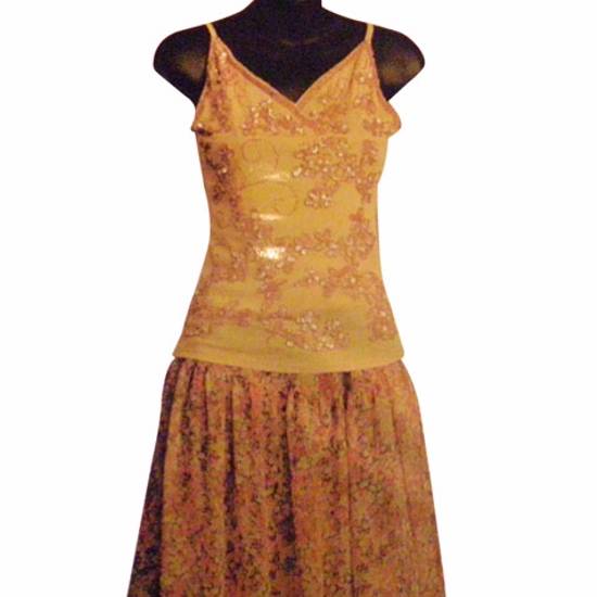The ladies top and skirt are embroidered and decorated with shiny sequins. The slip top and long dress combination makes it perfect for casual and formal occations.
