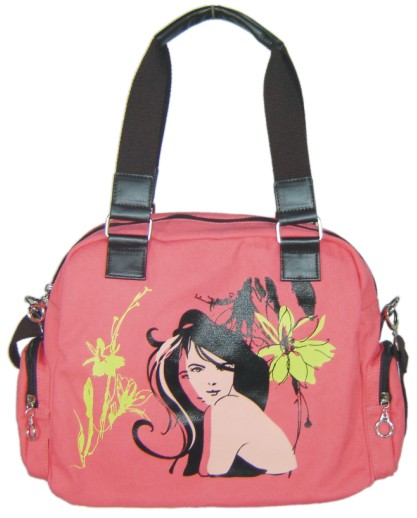 Jazz up your casual look with this lively tote bag. The lady figure printed on the surface grabs everyone's attention with its vivid colors. The padded and broadened shoulder straps are made of top-notch leather for sturdy carrying. On top of a spacious main compartment, it also features two functional side pockets, offering additional storage.