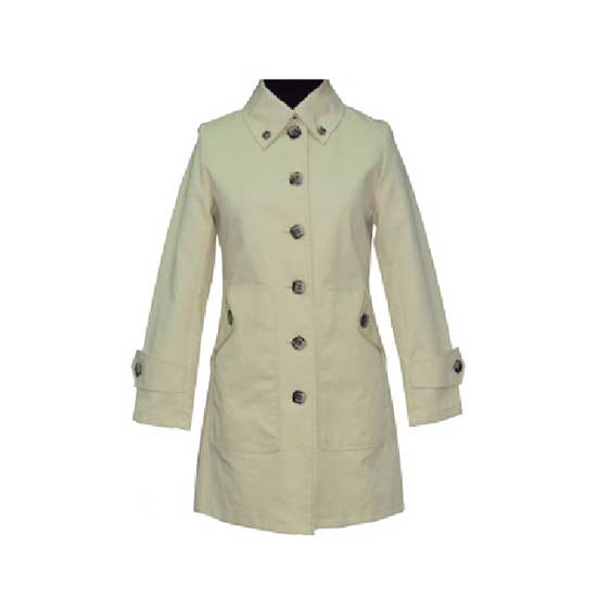 The ladies' trench coat features a long-sleeve design with a straight-point collar. It comes with buttons and checker-piping inside. This basic trench coat makes a chic addition to your wardrobe.