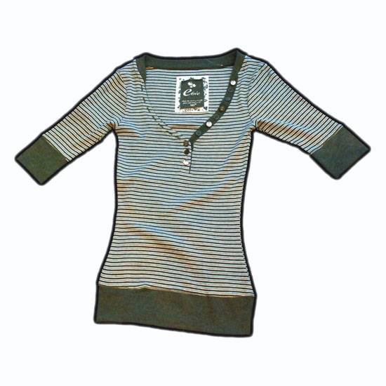 The ladies' blouse comes with a short-sleeve and low V-neck design. The stripe patterns and button decorations add a touch of uniqueness. This causal piece of blouse is a must-have for every lady.