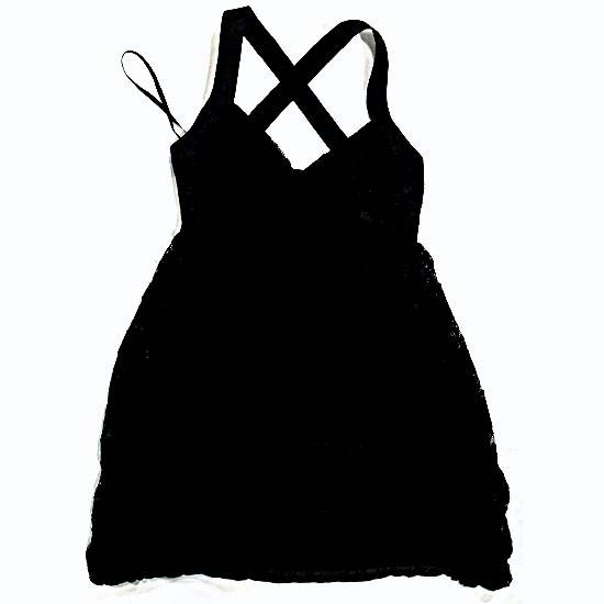 This is a one-piece dress with a deep-V and cross-back design. The fitted bodice is trimmed with lace to create a sense of feminine glamor. This elegant dress makes a great item to complement the grand wardrobe of ladies.