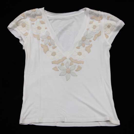 The ladies' V-neck cap-sleeve top boasts elegant floral prints along the neckline. It comes in a comfortable and breathable construction. This printed top is a great addition to your casual wardrobe.