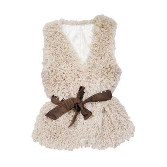 Displayed is a ladies' vest that comes in a furry style. Made of polyester, this vest is soft and smooth, guaranteeing your warmth with a good style. This high quality vest is decorated with a brown ribbon belt for a youthful look.