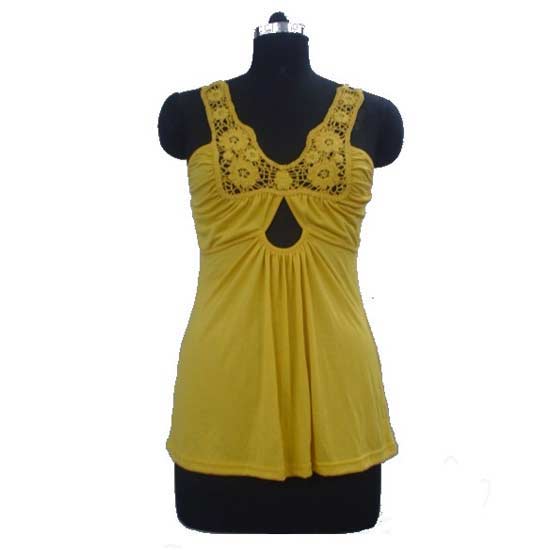 The ladies' vest flaunts a trendy style with the soft fabric construction. The embroidery around the neckline adds a touch of style. The vest makes a great choice of summer outfit.