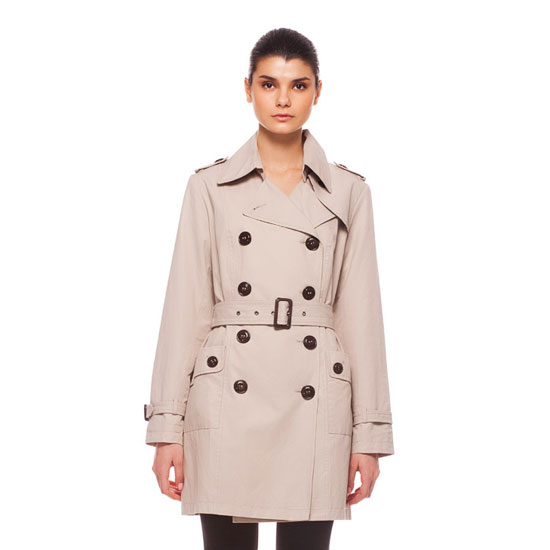 As shown is a ladies’ windbreaker designed in an elegant style. The windbreaker comes with a slim hip-length cut in a double-breasted style. Details like a double collar, epaulets and cuff straps add extra style to the design.