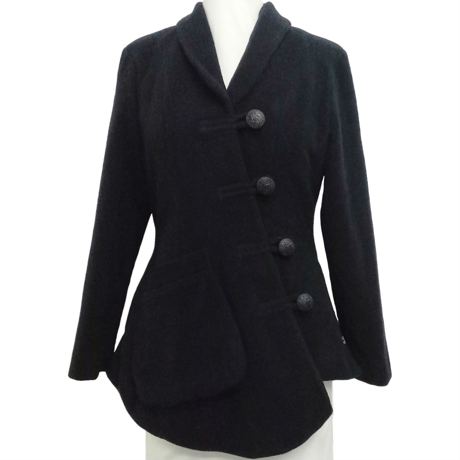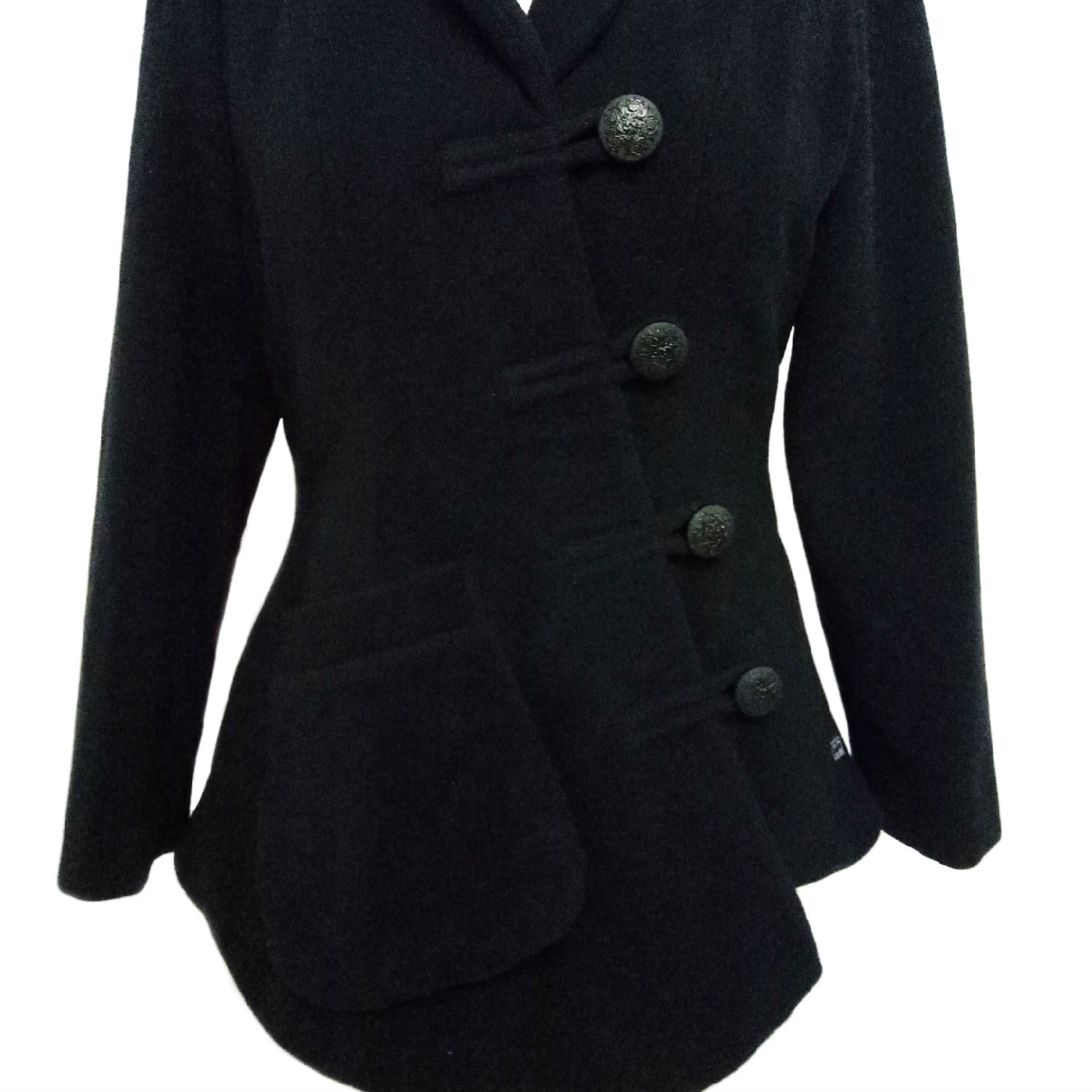 This ladies' A-line coat with military-inspired toggle accent will have you looking chic and cool. Its row of button toggles with loop fastening is positioned asymmetrically for a modern twist. Nicely fitted at the waist and flaring at the hips with a curved hemline, this handsome coat defines your waist and outlines your attractive hourglass body figure. It comes with a front bellow pocket which is slightly tilted for a unique look.