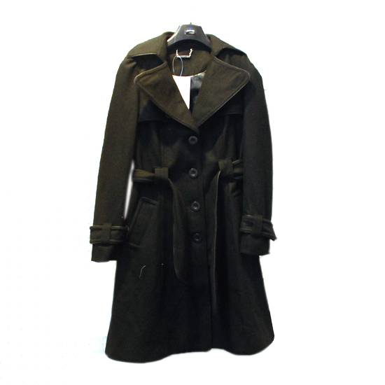 This is a ladies wool Melton coat. It consists of a large lapel with suede leather piping. There is self-fabric tape with large buttons on the sleeve cuffs as decoration.