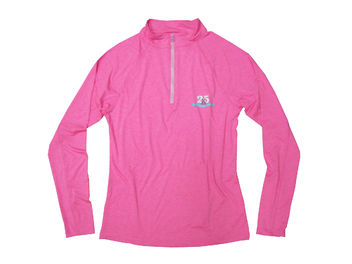 The featured ladies’ top has a pair of long sleeves with thumb holes and has a classic half zip stand collar. Coming in a charming pink heather yarn, this ladies’ top can attract attention instantly. It is flexible and comfortable to wear and is excellent for sports and workouts.